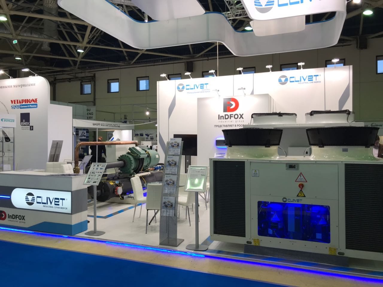 Официальный дистрибьютер итальянской компания Clivet в России, компания INDFOX представила на выставке чиллер с немецким винтовым компрессором и легко обслуживаемыми кожухотрубными теплообменниками WDH-SL3 200.1. Повышенная эффективность холодильного контура достигается за счет дополнительного