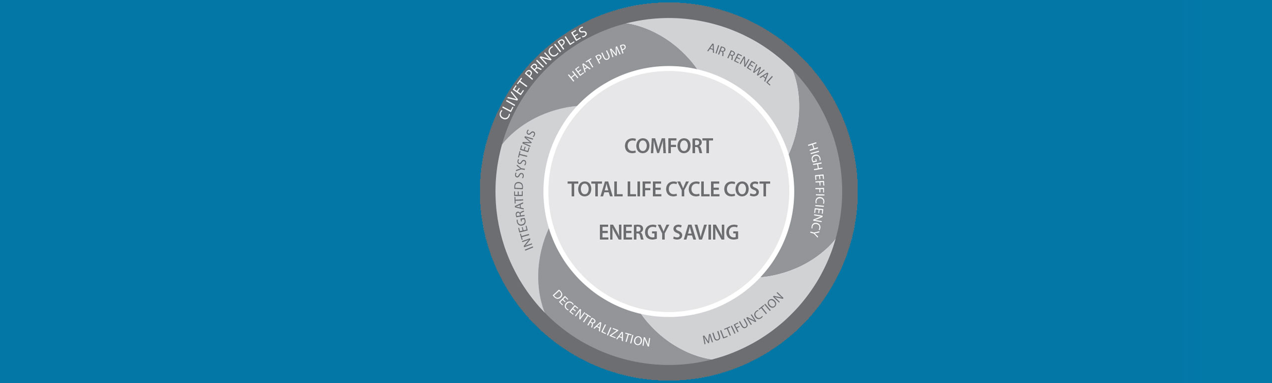 Ova načela predstavljaju temelj izrade sustava za specifične primjene, koji su oduvijek bili dio Clivet DNK.Oni predstavljaju temelj na kojem je tvrtka Clivet izgradila svoj novi način gledanja na sustave, čime je postala okosnica za održive sustave budućnosti.